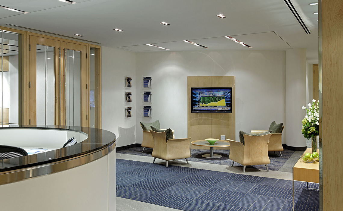 Becoming the signature tenant in the building, the firm wanted to demonstrate a knowledgeable, professional image while, at the same time, creating a philosophical bond with companies willing to take a chance on the future. As small businesses, the clientele here had a higher instance of coming to the facility, rather than meeting on-site, so the space was designed to be more streamlined and approachable than other facilities.