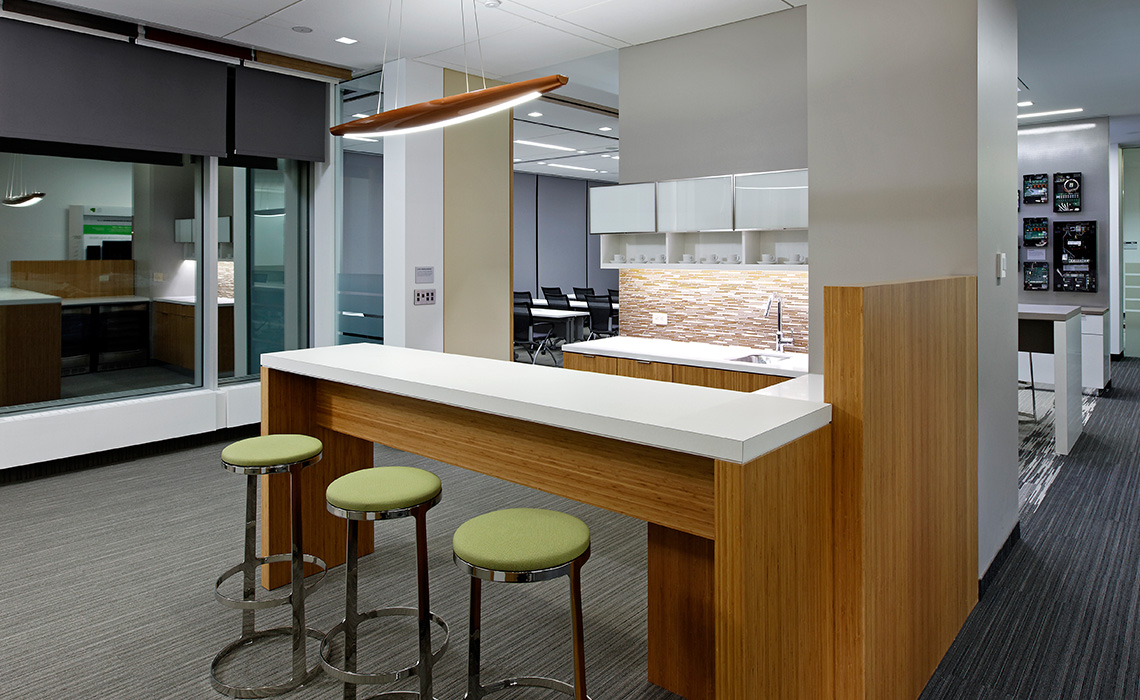 The plan was to build a facility where the manufacturer could demonstrate the full range of products sold through electrical contractors and wholesale outlets, as well as showing them how to specify and install the equipment. The Centre was designed to accommodate two groups simultaneously, with a demonstration areas and a classroom for in-depth training. A small cafe provided a friendly atmosphere for refreshments, doubling as a third presentation space, should the need arise.